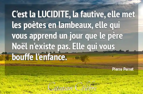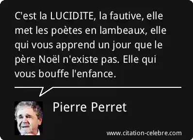 C'est la LUCIDITE, la fautive, elle met les poètes en lambeaux, elle qui vous apprend un jour que le père Noël n'existe pas. Elle qui vous bouffe l'enfance.