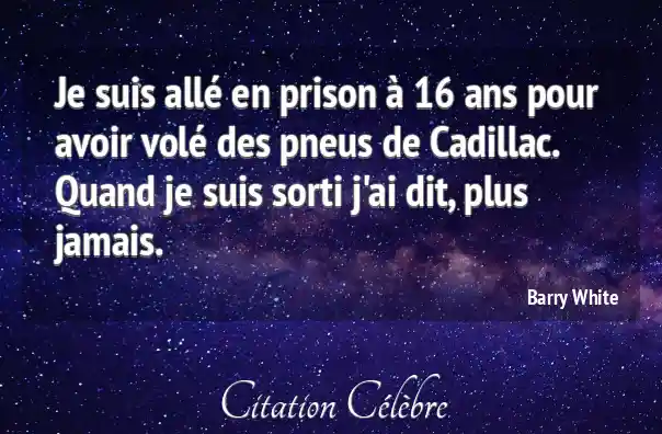 Je suis allé en prison à 16 ans pour avoir volé des pneus de Cadillac. Quand je suis sorti j'ai dit, plus jamais.