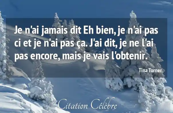 Je n'ai jamais dit Eh bien, je n'ai pas ci et je n'ai pas ça. J'ai dit, je ne l'ai pas encore, mais je vais l'obtenir.