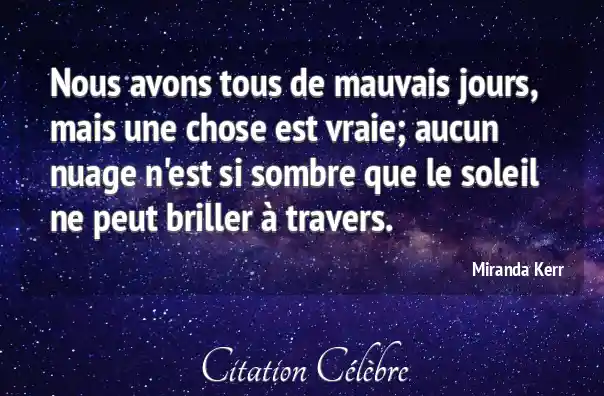 Nous avons tous de mauvais jours, mais une chose est vraie; aucun nuage n'est si sombre que le soleil ne peut briller à travers.