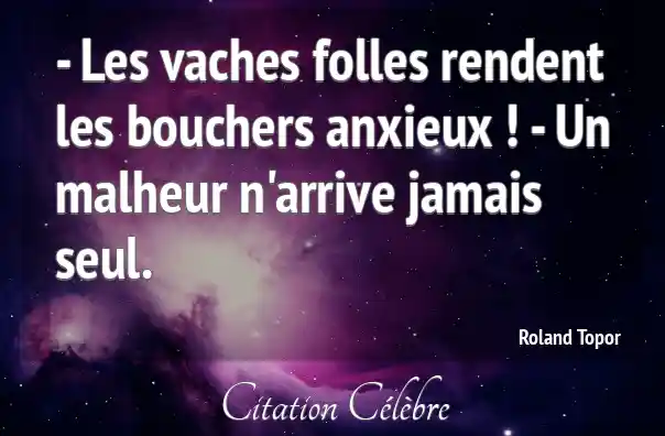- Les vaches folles rendent les bouchers anxieux ! - Un malheur n'arrive jamais seul.