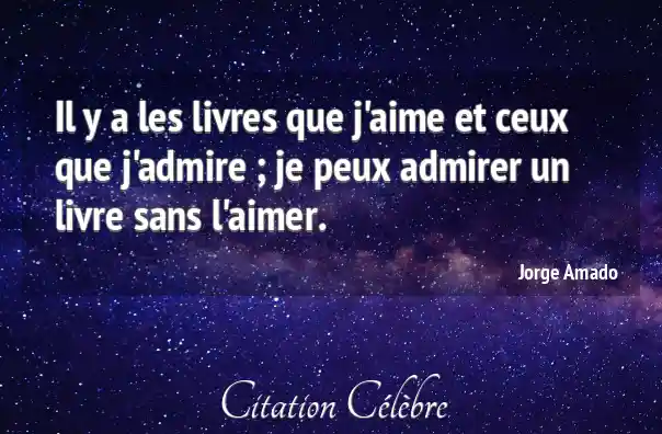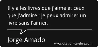 Il y a les livres que j'aime et ceux que j'admire ; je peux admirer un livre sans l'aimer.