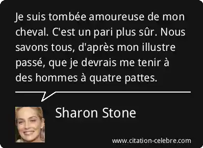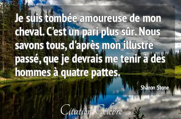 Je suis tombée amoureuse de mon cheval. C'est un pari plus sûr. Nous savons tous, d'après mon illustre passé, que je devrais me tenir à des hommes à quatre pattes.