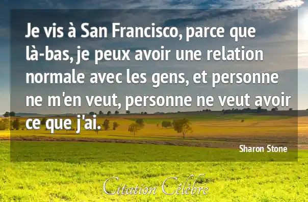 Je vis à San Francisco, parce que là-bas, je peux avoir une relation normale avec les gens, et personne ne m'en veut, personne ne veut avoir ce que j'ai.