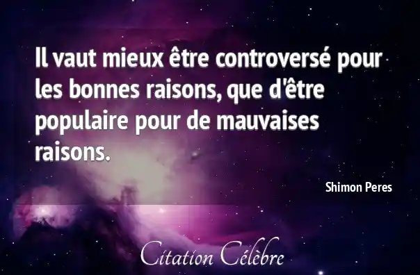 Il vaut mieux être controversé pour les bonnes raisons, que d'être populaire pour de mauvaises raisons.