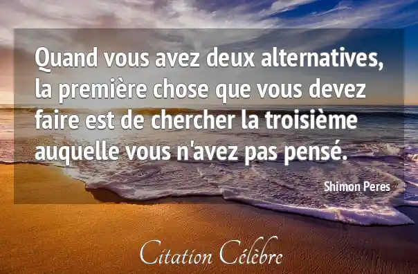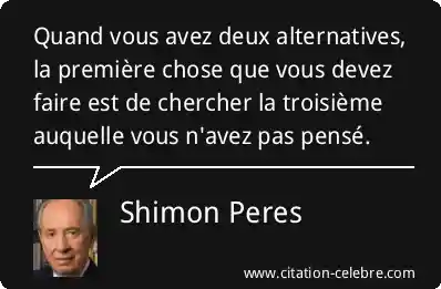Quand vous avez deux alternatives, la première chose que vous devez faire est de chercher la troisième auquelle vous n'avez pas pensé.