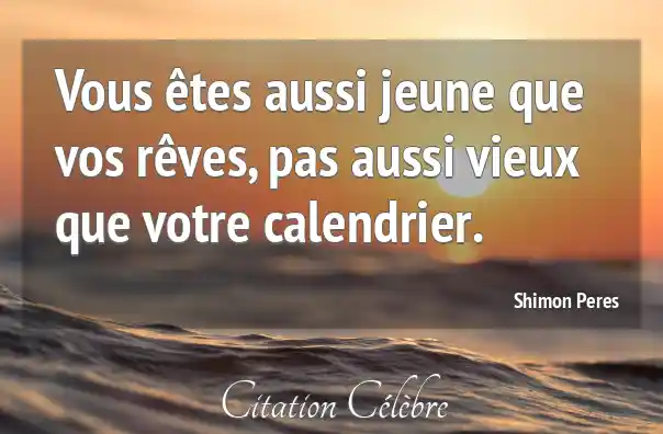 Vous êtes aussi jeune que vos rêves, pas aussi vieux que votre calendrier.