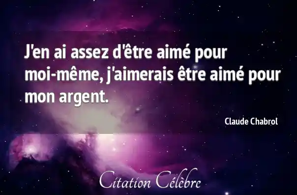 J'en ai assez d'être aimé pour moi-même, j'aimerais être aimé pour mon argent.