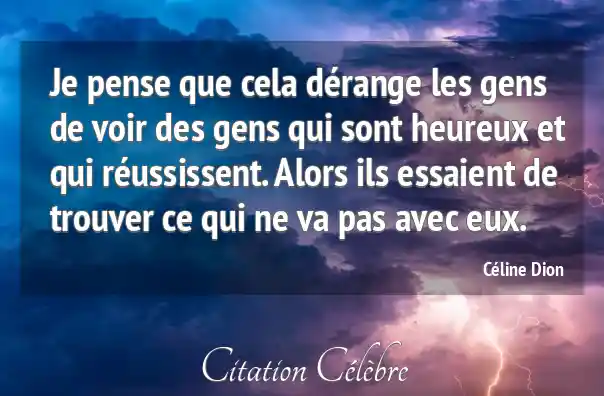 Je pense que cela dérange les gens de voir des gens qui sont heureux et qui réussissent. Alors ils essaient de trouver ce qui ne va pas avec eux.