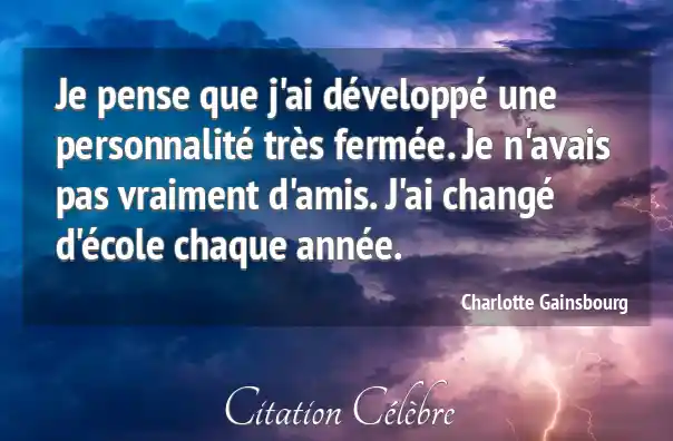 Je pense que j'ai développé une personnalité très fermée. Je n'avais pas vraiment d'amis. J'ai changé d'école chaque année.