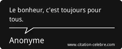 Le bonheur, c'est toujours pour tous.