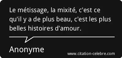 Citation Anonyme amour : Le métissage, la mixité, c'est ce qu'il y a de...