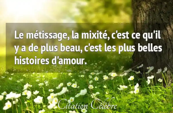 Le métissage, la mixité, c'est ce qu'il y a de plus beau, c'est les plus belles histoires d'amour.