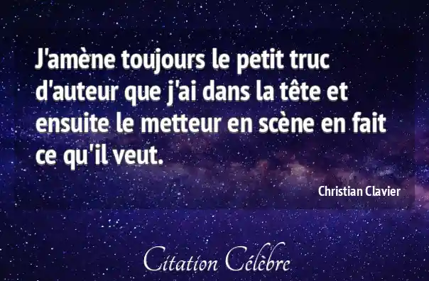 J'amène toujours le petit truc d'auteur que j'ai dans la tête et ensuite le metteur en scène en fait ce qu'il veut.