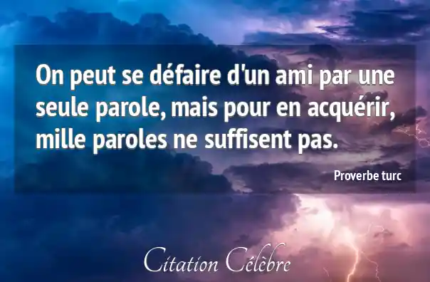 On peut se défaire d'un ami par une seule parole, mais pour en acquérir, mille paroles ne suffisent pas.