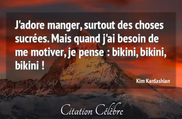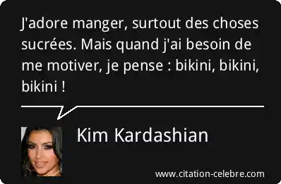 J'adore manger, surtout des choses sucrées. Mais quand j'ai besoin de me motiver, je pense : bikini, bikini, bikini !