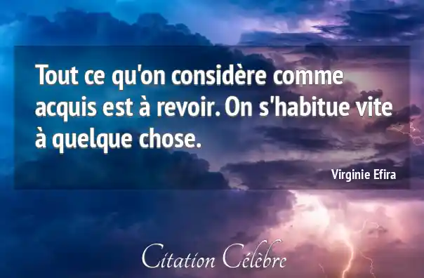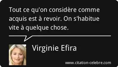 Tout ce qu'on considère comme acquis est à revoir. On s'habitue vite à quelque chose.