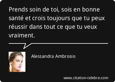 Prends soin de toi, sois en bonne santé et crois toujours que tu peux réussir dans tout ce que tu veux vraiment.
