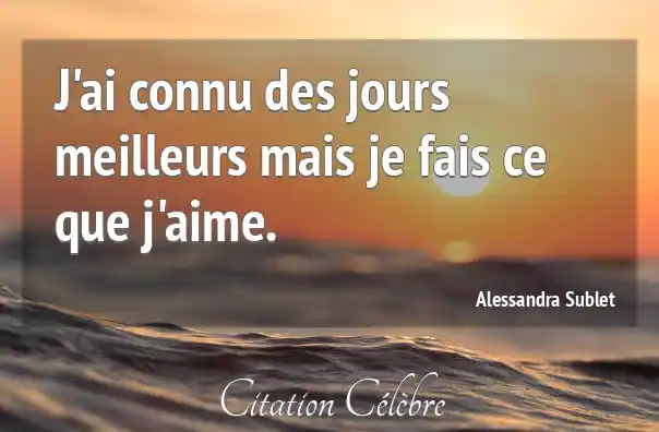 J'ai connu des jours meilleurs mais je fais ce que j'aime.