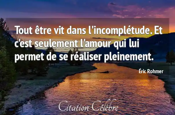 Tout être vit dans l'incomplétude. Et c'est seulement l'amour qui lui permet de se réaliser pleinement.