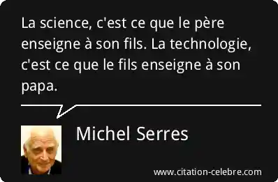 La science, c'est ce que le père enseigne à son fils. La technologie, c'est ce que le fils enseigne à son papa.
