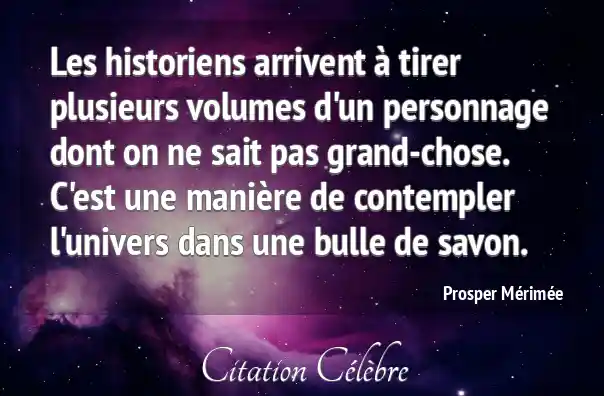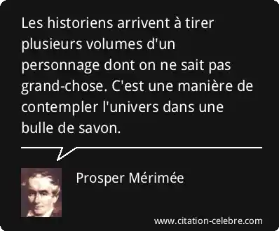 Les historiens arrivent à tirer plusieurs volumes d'un personnage dont on ne sait pas grand-chose. C'est une manière de contempler l'univers dans une bulle de savon.