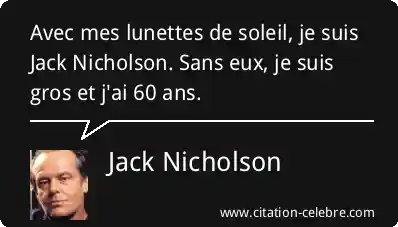 Avec mes lunettes de soleil, je suis Jack Nicholson. Sans eux, je suis gros et j'ai 60 ans.