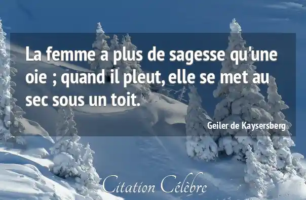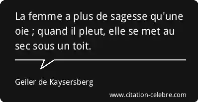 La femme a plus de sagesse qu'une oie ; quand il pleut, elle se met au sec sous un toit.