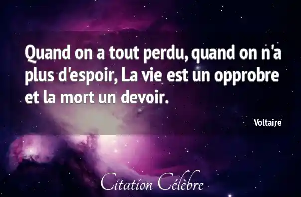 Quand on a tout perdu, quand on n'a plus d'espoir, La vie est un opprobre et la mort un devoir.