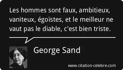 Les hommes sont faux, ambitieux, vaniteux, égoïstes, et le meilleur ne vaut pas le diable, c'est bien triste.