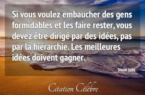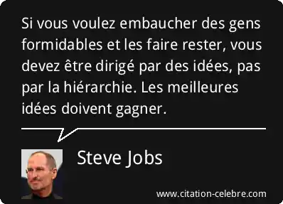 Si vous voulez embaucher des gens formidables et les faire rester, vous devez être dirigé par des idées, pas par la hiérarchie. Les meilleures idées doivent gagner.