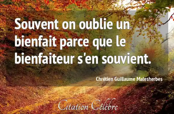 Souvent on oublie un bienfait parce que le bienfaiteur s'en souvient.