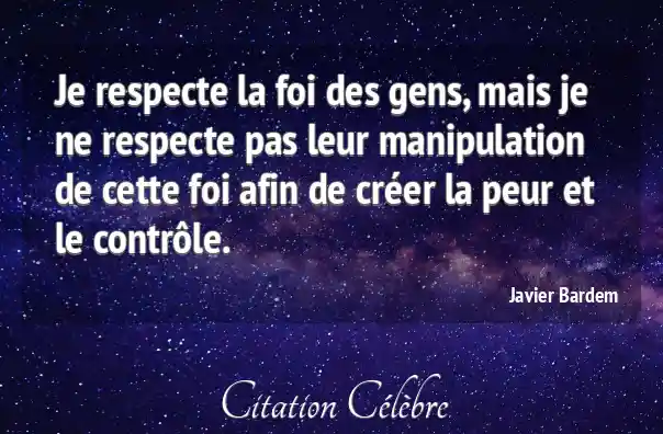 Je respecte la foi des gens, mais je ne respecte pas leur manipulation de cette foi afin de créer la peur et le contrôle.