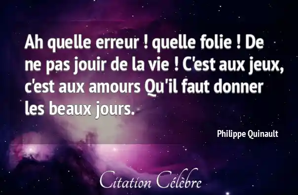 Ah quelle erreur ! quelle folie ! De ne pas jouir de la vie ! C'est aux jeux, c'est aux amours Qu'il faut donner les beaux jours.