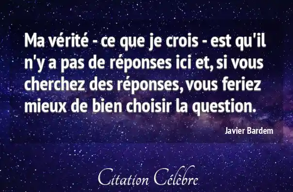 Ma vérité - ce que je crois - est qu'il n'y a pas de réponses ici et, si vous cherchez des réponses, vous feriez mieux de bien choisir la question.