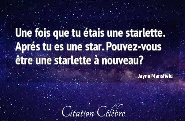 Une fois que tu étais une starlette. Aprés tu es une star. Pouvez-vous être une starlette à nouveau?
