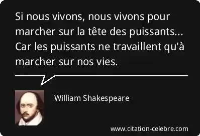 Si nous vivons, nous vivons pour marcher sur la tête des puissants... Car les puissants ne travaillent qu'à marcher sur nos vies.