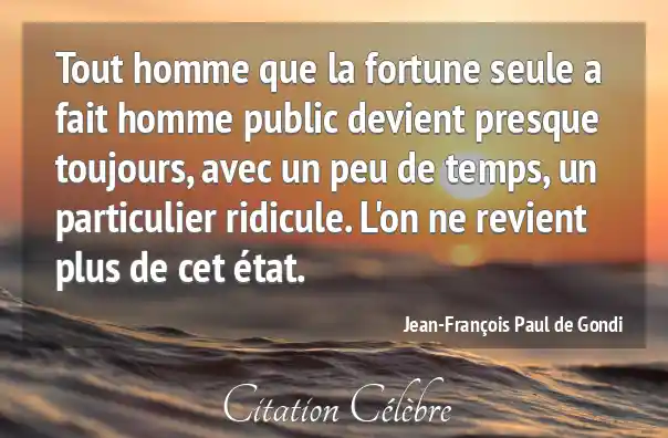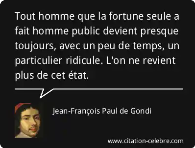 Tout homme que la fortune seule a fait homme public devient presque toujours, avec un peu de temps, un particulier ridicule. L'on ne revient plus de cet état.