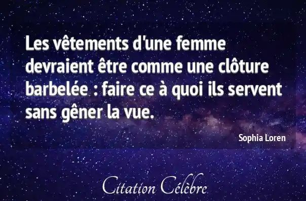 Les vêtements d'une femme devraient être comme une clôture barbelée : faire ce à quoi ils servent sans gêner la vue.