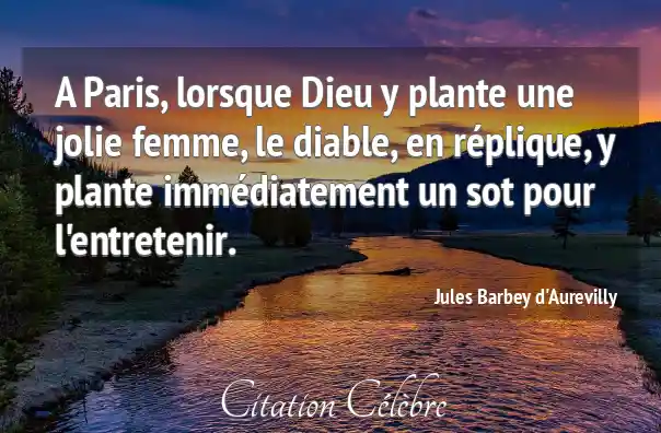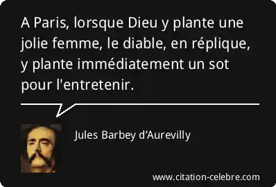 A Paris, lorsque Dieu y plante une jolie femme, le diable, en réplique, y plante immédiatement un sot pour l'entretenir.