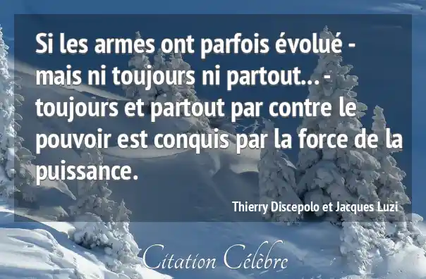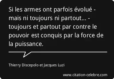 Si les armes ont parfois évolué - mais ni toujours ni partout... - toujours et partout par contre le pouvoir est conquis par la force de la puissance.