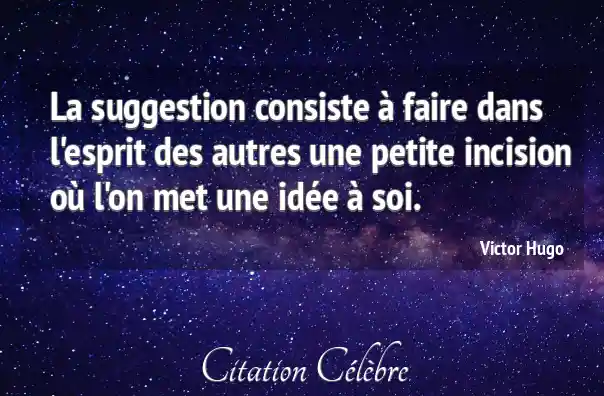 La suggestion consiste à faire dans l'esprit des autres une petite incision où l'on met une idée à soi.