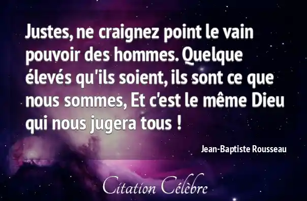 Justes, ne craignez point le vain pouvoir des hommes. Quelque élevés qu'ils soient, ils sont ce que nous sommes, Et c'est le même Dieu qui nous jugera tous !