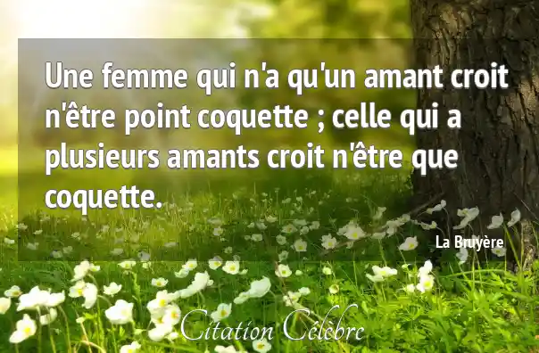 Une femme qui n'a qu'un amant croit n'être point coquette ; celle qui a plusieurs amants croit n'être que coquette.