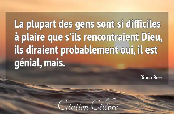 La plupart des gens sont si difficiles à plaire que s'ils rencontraient Dieu, ils diraient probablement oui, il est génial, mais.