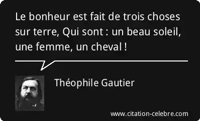 Le bonheur est fait de trois choses sur terre, Qui sont : un beau soleil, une femme, un cheval !