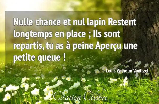 Nulle chance et nul lapin Restent longtemps en place ; Ils sont repartis, tu as à peine Aperçu une petite queue !