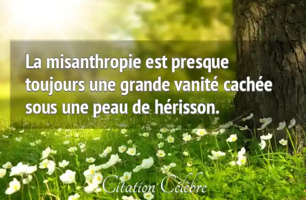La misanthropie est presque toujours une grande vanité cachée sous une peau de hérisson.