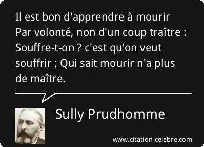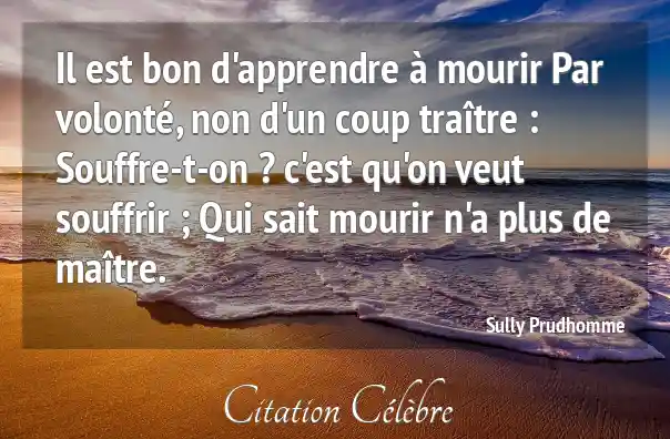 Il est bon d'apprendre à mourir Par volonté, non d'un coup traître : Souffre-t-on ? c'est qu'on veut souffrir ; Qui sait mourir n'a plus de maître.