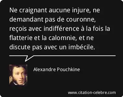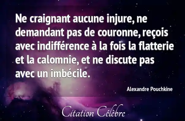 Ne craignant aucune injure, ne demandant pas de couronne, reçois avec indifférence à la fois la flatterie et la calomnie, et ne discute pas avec un imbécile.